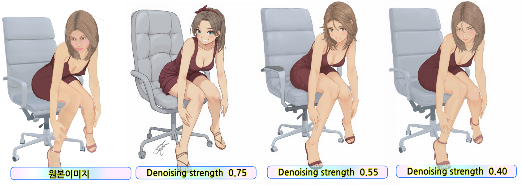 Denoising strength 테스트 입니다. 전반적으로 정확도가 이전버전 보다 좋은것 같습니다.