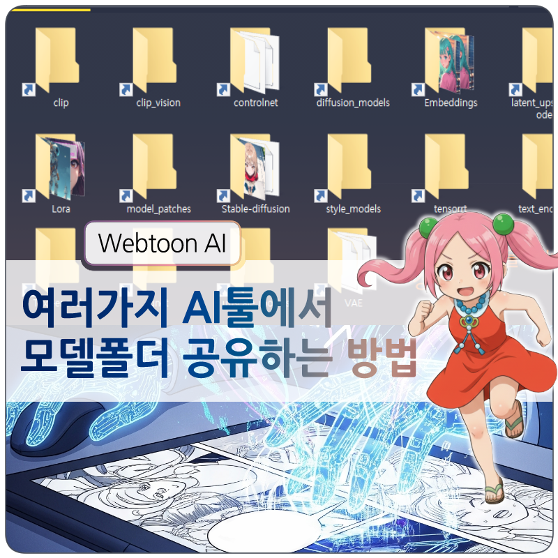 하지만 각각의 툴마다 고유의 모델 폴더에 AI모델 파일들이 위치해 있어야 합니다. 때문에 여러 가지 AI툴을 사용하는 경우 같은 모델을 여기저기 다 설치해 줘야 합니다. 하드디스크 공간이 낭비되는 것이죠.