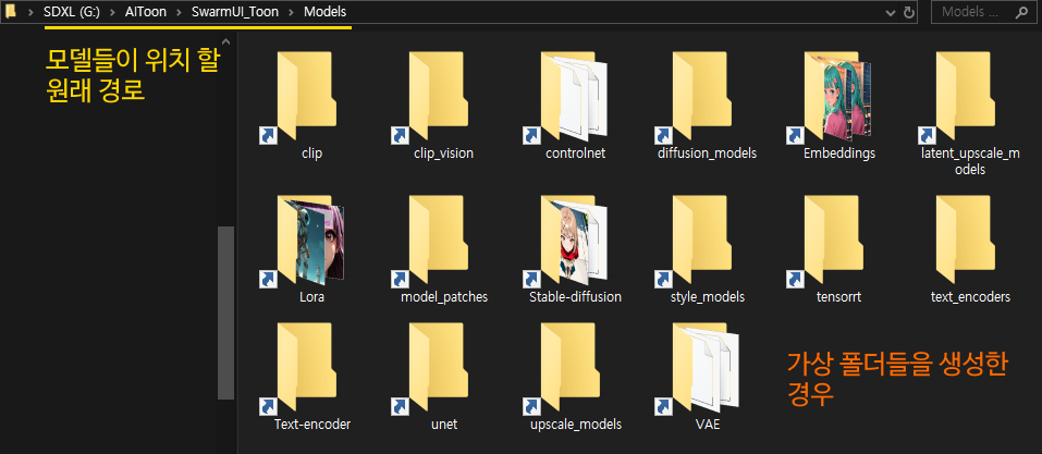 위 그림에서처럼 모델 폴더와 각각의 AI툴들이 동일한 폴더 경로상에 있습니다.