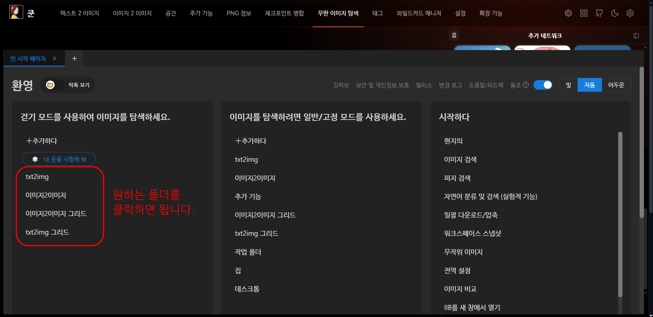 해당 탭을 클릭해 보면 다음과 같이 이미지 생성 폴더가 왼쪽에 보입니다.