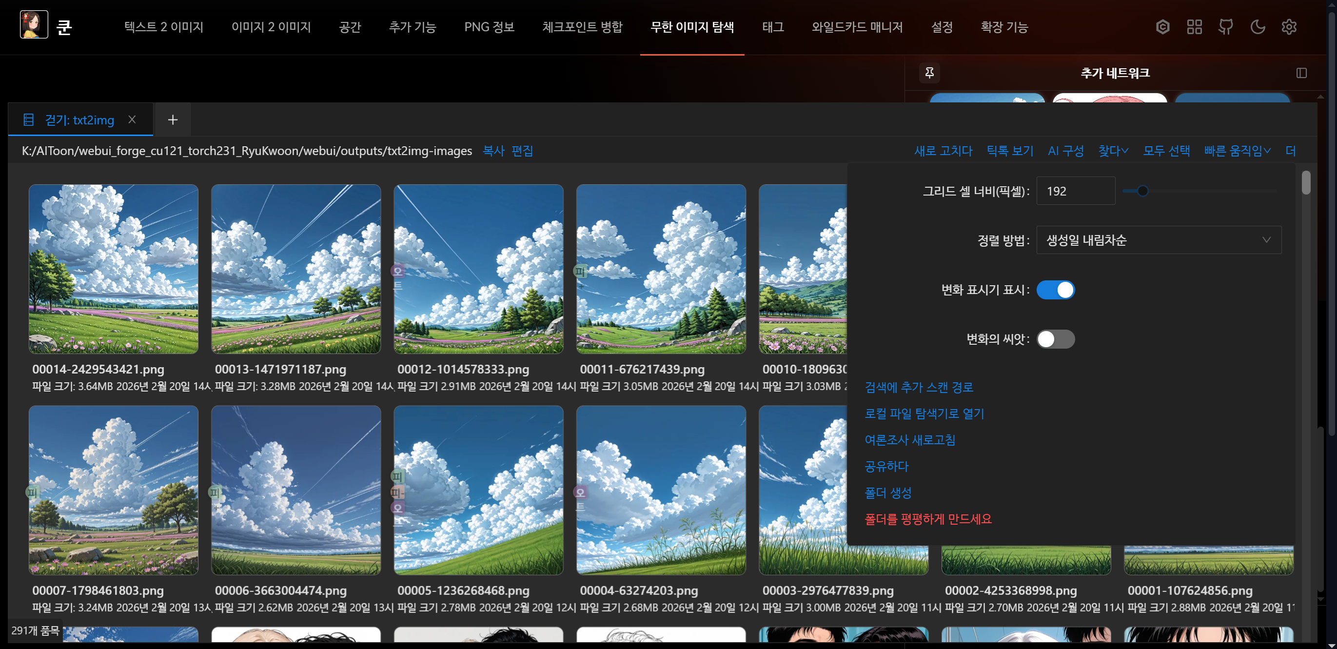 infinite-image-browsing를 사용하면 생성한 이미지폴더를 통합적으로 쉽게 관리할 수 있다는 점에서 WebUI Forge를 사용할 때 매우 유용한 확장 기능 중 하나라고 생각합니다.