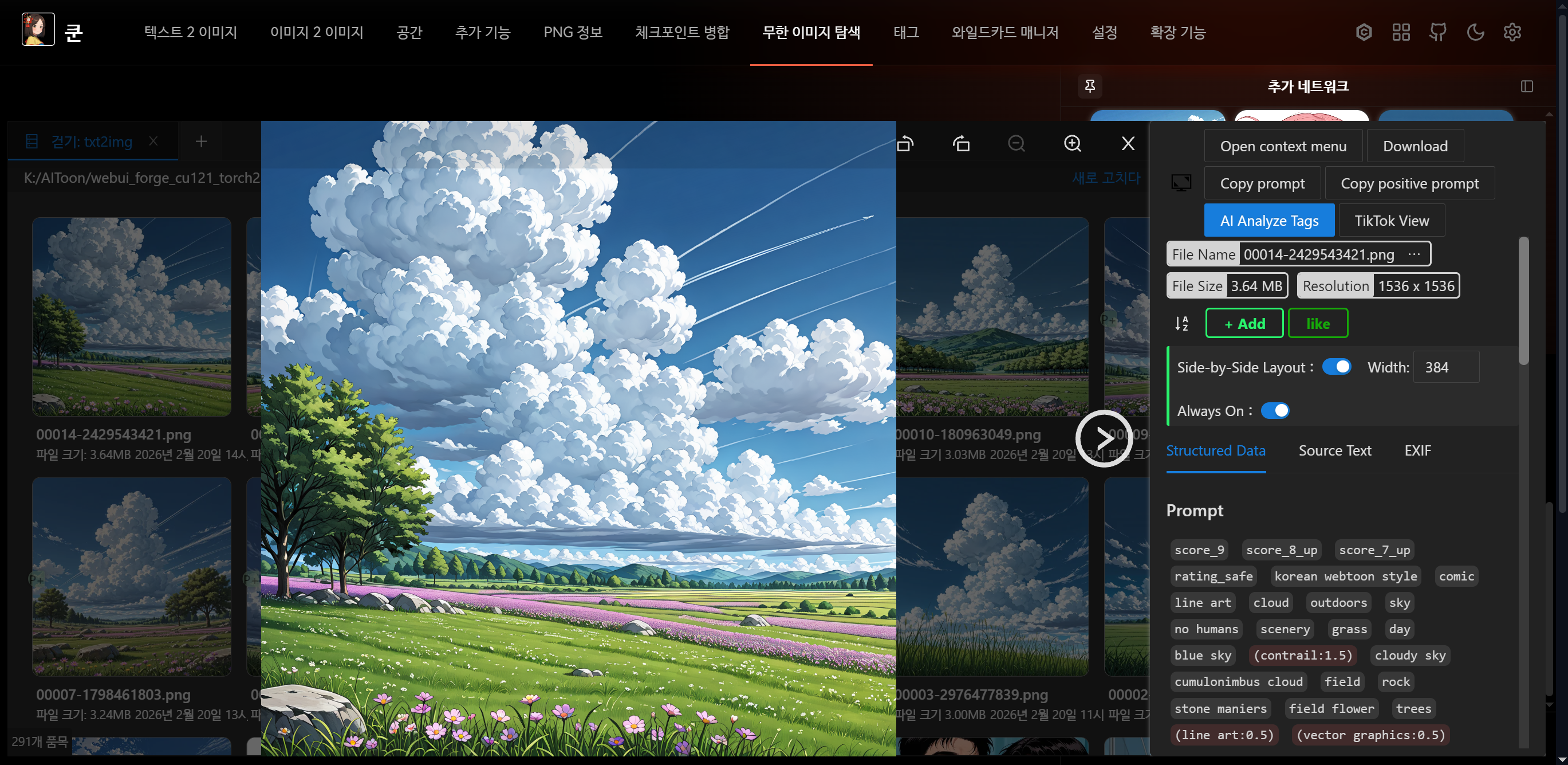 세부정보 열람은 Png Info탭과 같은 기능을 가지고 있다고 보시면 됩니다.