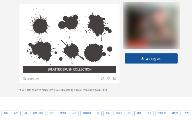 이 사이트 외에도 여러 사이트가 있지만 이러한 무료 사이트를 통하여 포토샵 브러시를 다운로드 받는 과정일 알아 봅시다.
