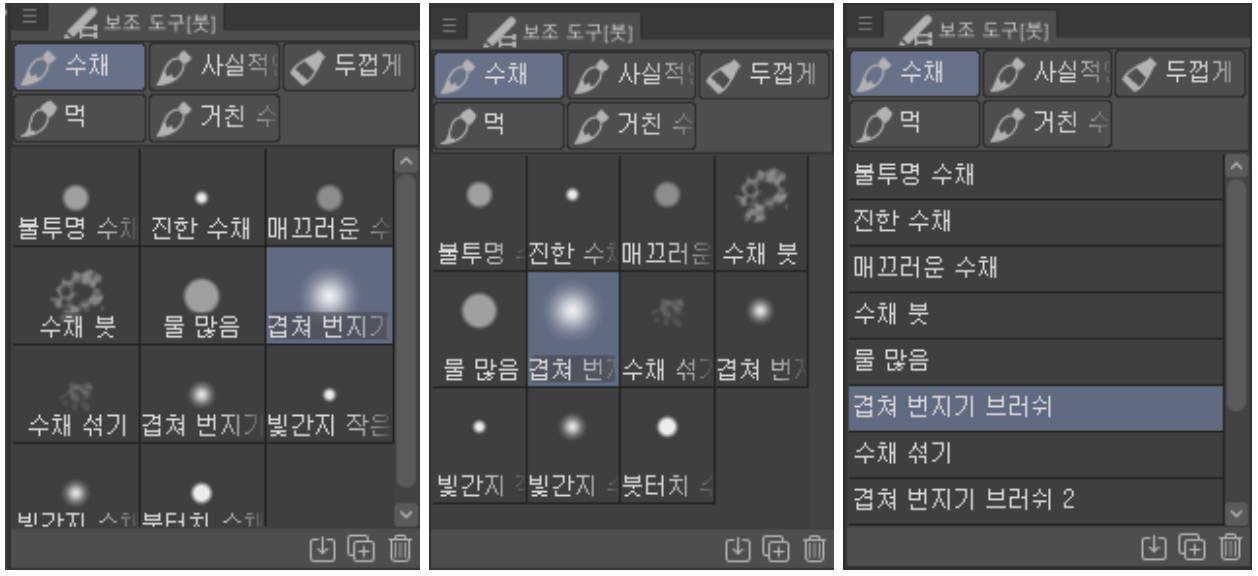 도구가 너무 많으면 기존의 스트로크 방식의 도구보기가 불편 할 수 있습니다. 하지만 포토샵의 브러시 도구처럼 다양한 방법으로 도구를 볼 수 있는 기능이 클립스튜디오에도 있습니다. 이 기능에 대해 알아 봅니다.