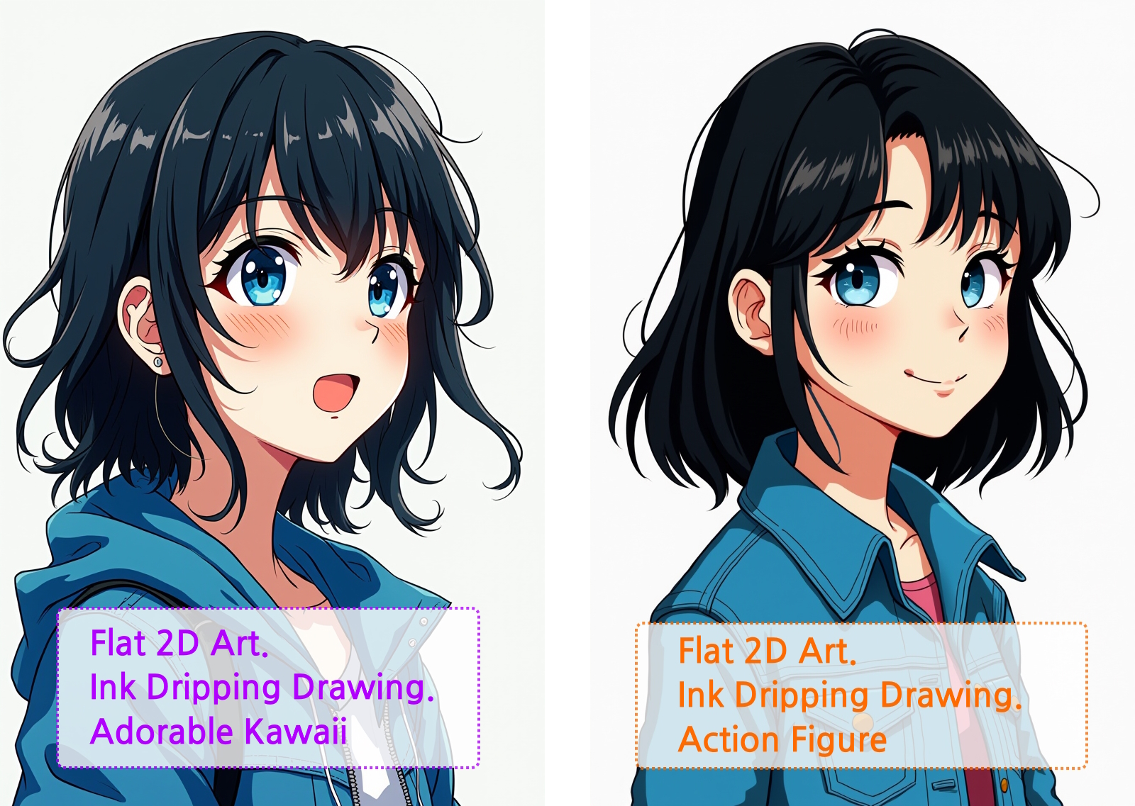 대부분 결과물을 보면 알 수 있듯이 Flat 2D Art나 Ink Drawing 등의 선화에 영향을 주는 스타일과 Watercolor 등과 같이 색감에 변화를 주는 스타일도 있습니다.